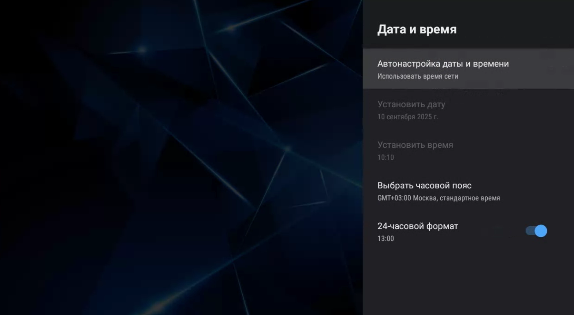 Иногда интернет не подключается к ТВ-приставке из-за неправильных настроек даты и времени. Чтобы исправить это, установите автоматическое определение даты и времени по вашей сети. Это самый простой способ — приставка сама синхронизируется с интернетом.